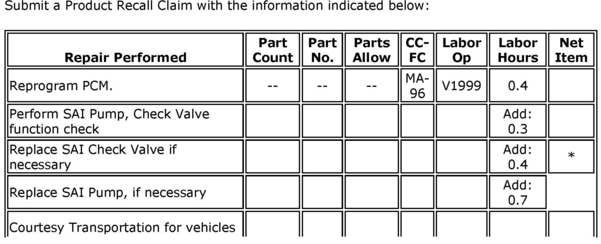Dealers are to reprogram the Powertrain Control Module (PCM) and verify SAI system operation.