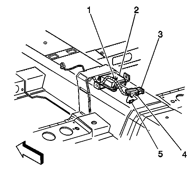 3. Remove the connector position assurance (CPA) (1) from the inflatable restraint sensing and diagnostic module (SDM) wiring harness connector (2).