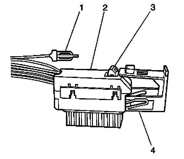 8. Install the CPA (1) to the inflatable restraint sensing and diagnostic module (SDM) wiring harness connector (2).