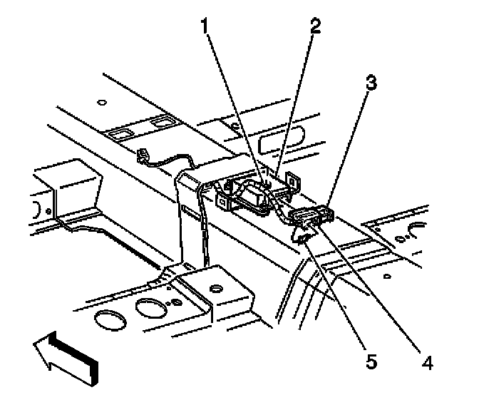 3. Remove the connector position assurance (CPA) (1) from the inflatable restraint sensing and diagnostic module (SDM) wiring harness connector (2).
