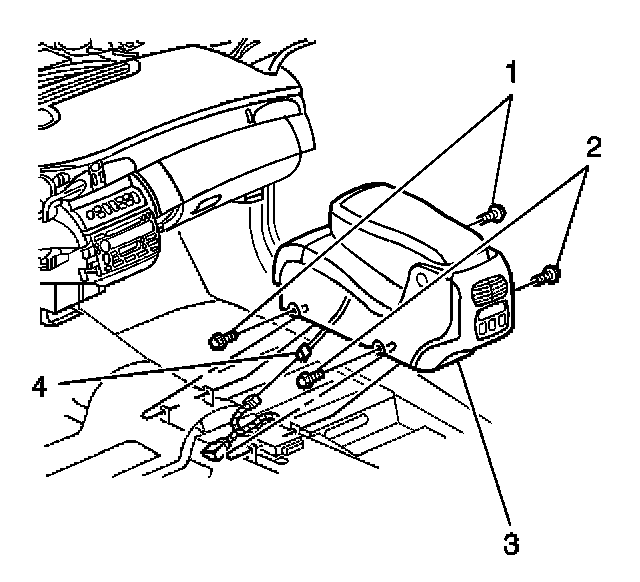 IMPORTANT: The inflatable restraint sensing diagnostic module (SDM) is shown with the carpet removed for illustration purposes only. Removal of the front carpet and/or the front seats is not necessary to service the SDM