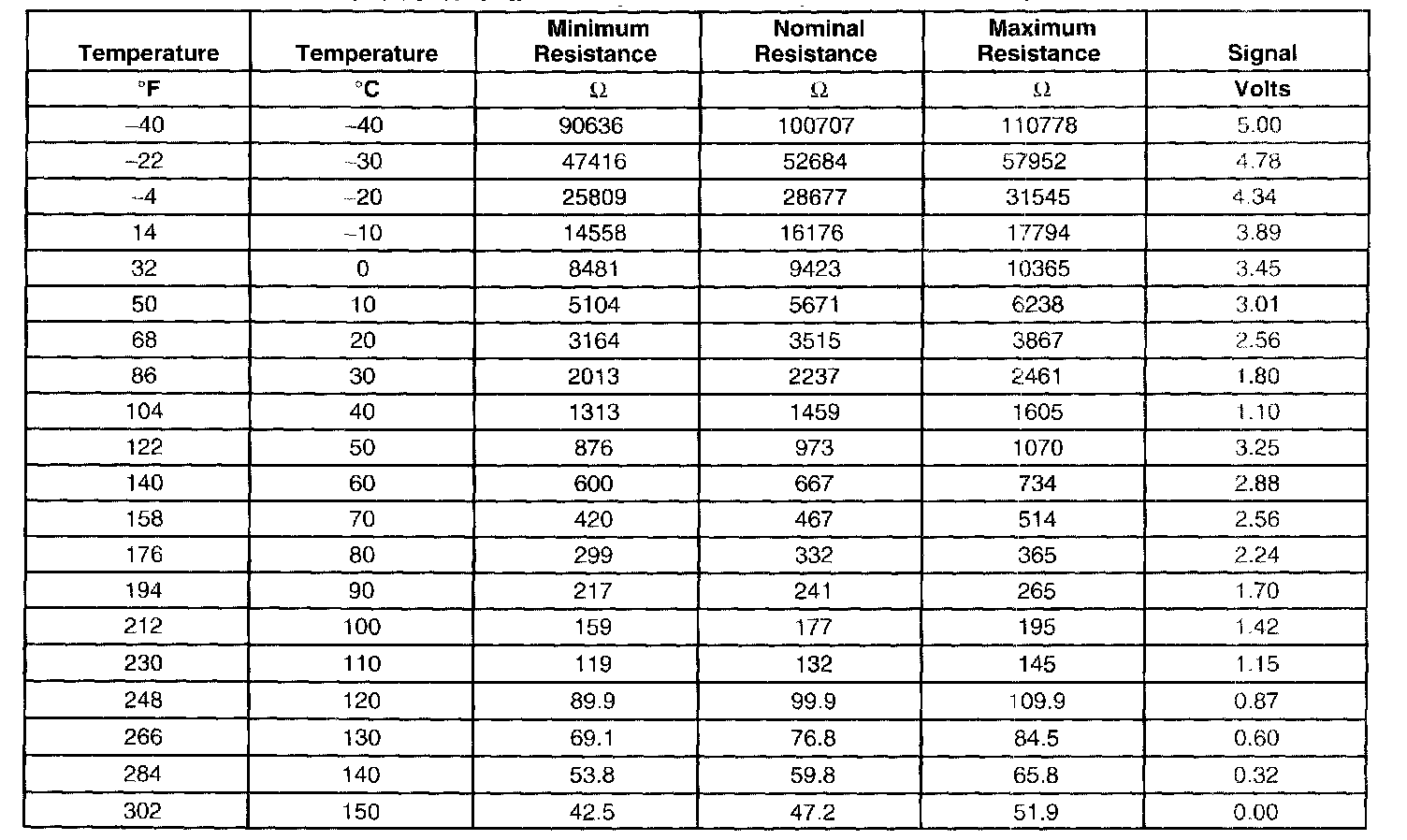 Transmission Fluid Temperature (TFT) Sensor Specifications: