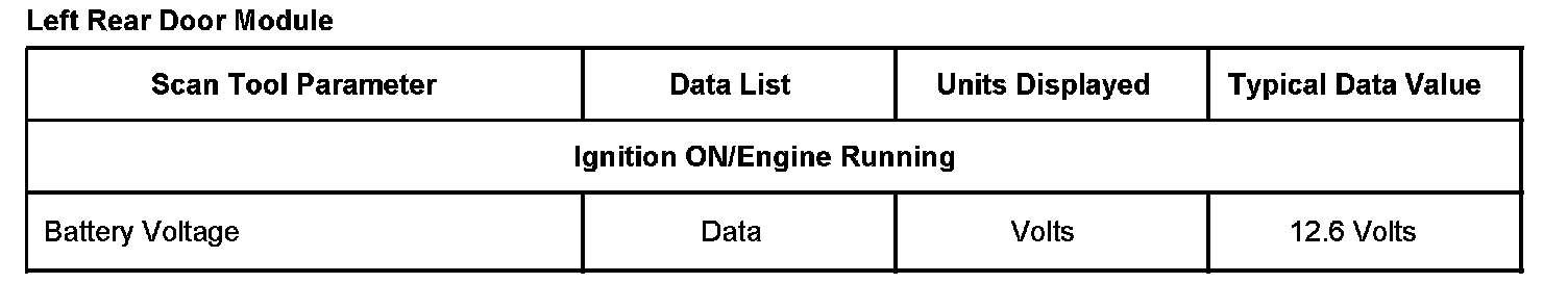 Normal Scan Tool Data Values - Left Rear Door Module