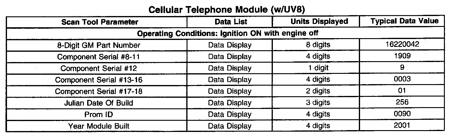 Cellular Telephone Module (With RPO Code UV8):