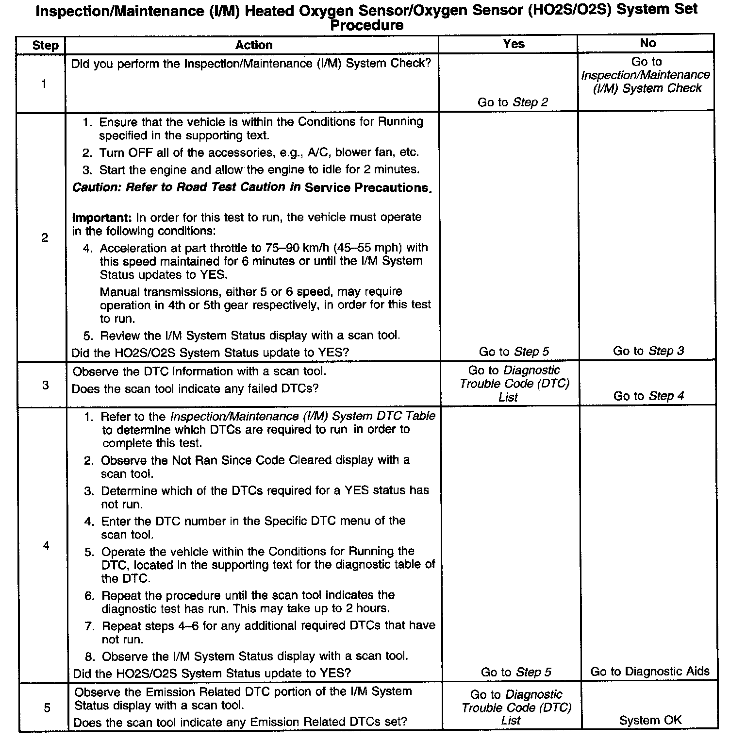 INSPECTION/MAINTENANCE (I/M) HEATED OXYGEN SENSOR/OXYGEN SENSOR (HO2S/O2S) SYSTEM SET PROCEDUREDESCRIPTION
