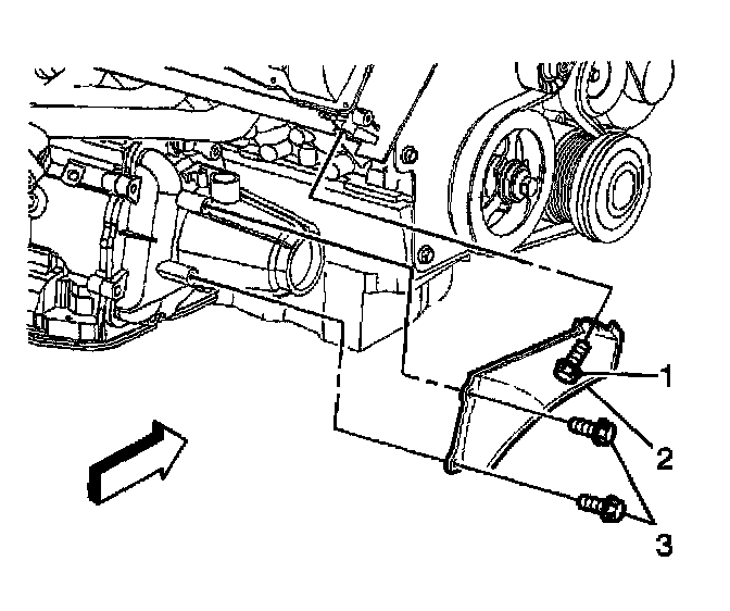 2. Remove the bolts (1, 3) securing the front transaxle brace (2) to the transaxle and right cylinder head.