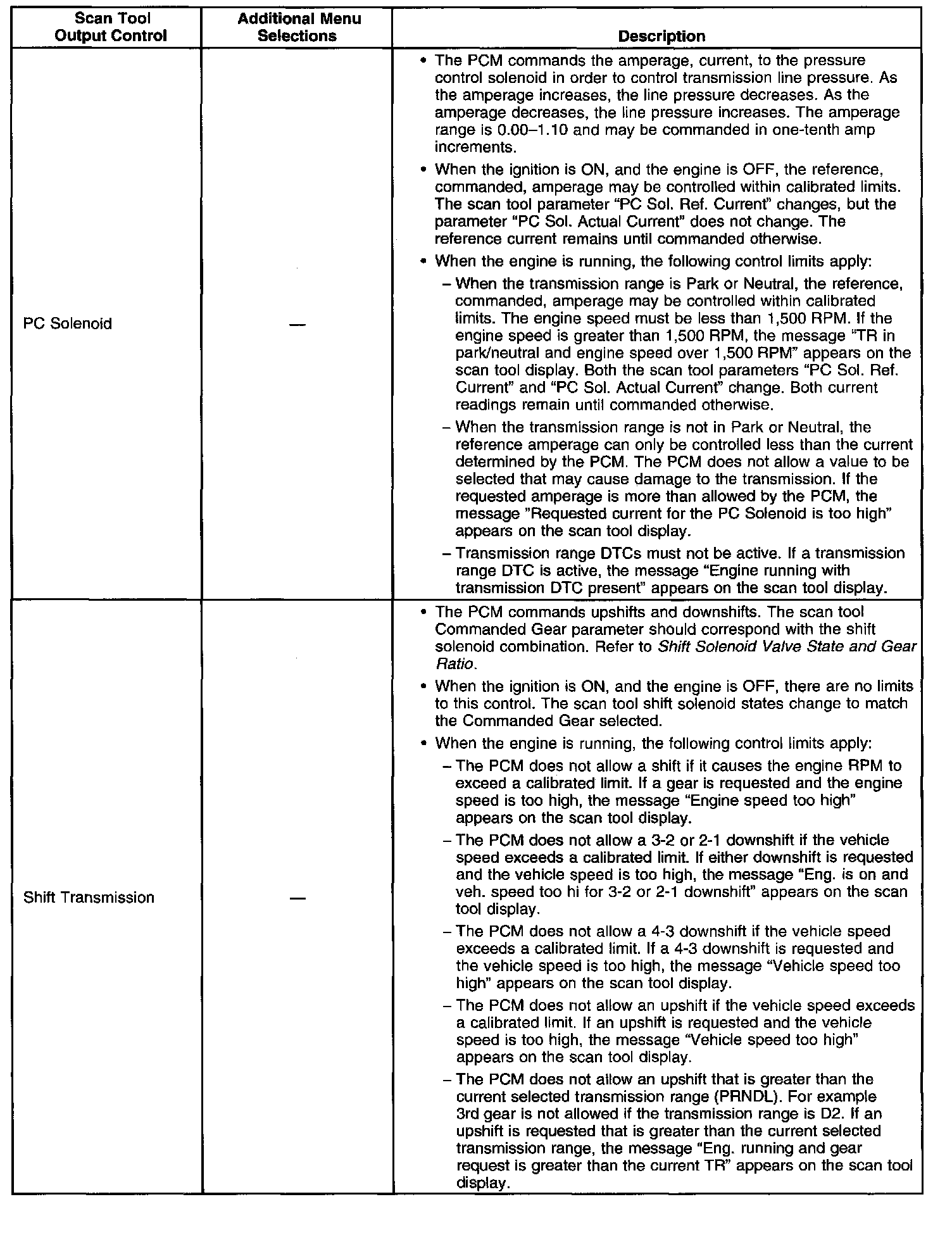 Scan Tool Output Controls