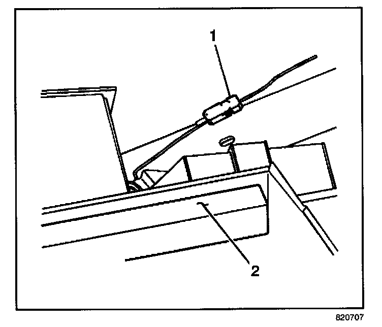 4. Remove the GPS antenna cable (1) from the cross car brace.