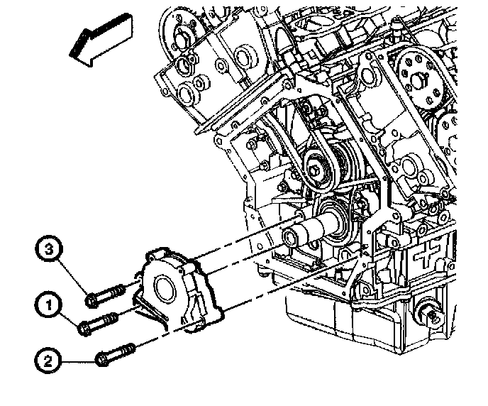 Tighten the oil pump mounting bolts in the sequence shown to 35 degrees using the J 45059.