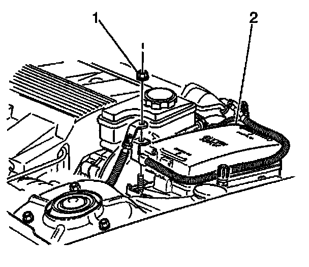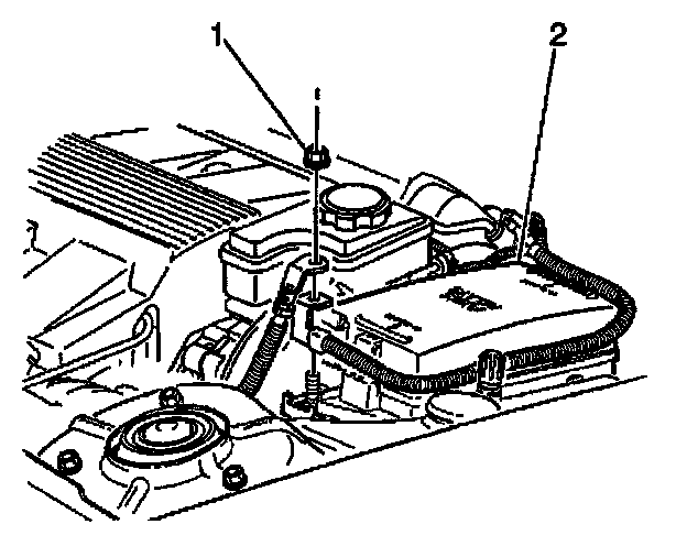 4. Remove the nut (1) securing the battery positive cable to the remote positive terminal.