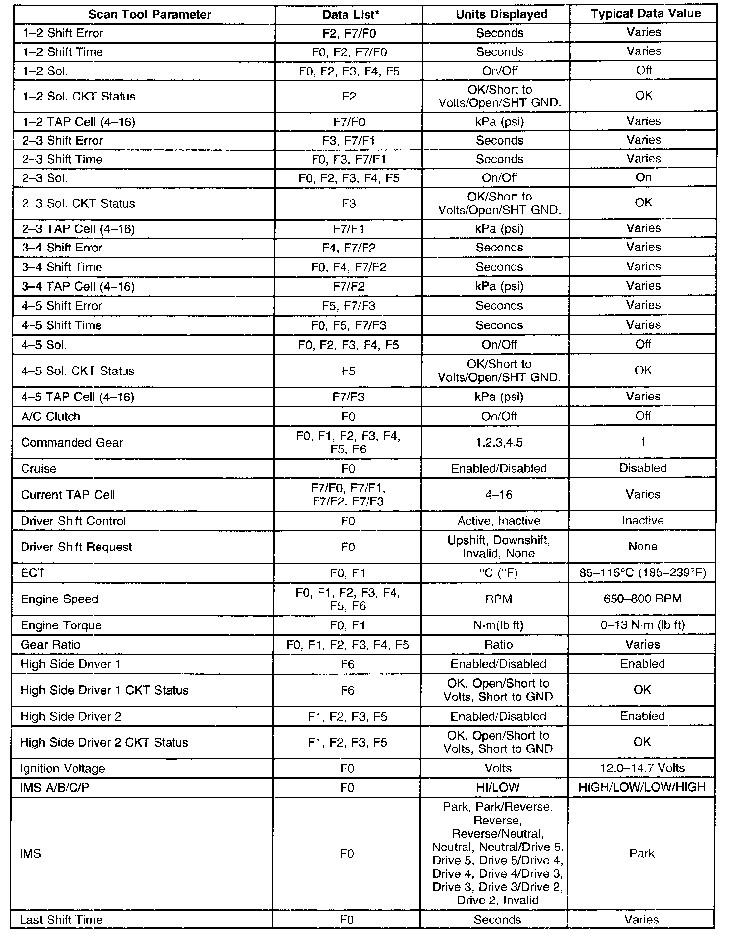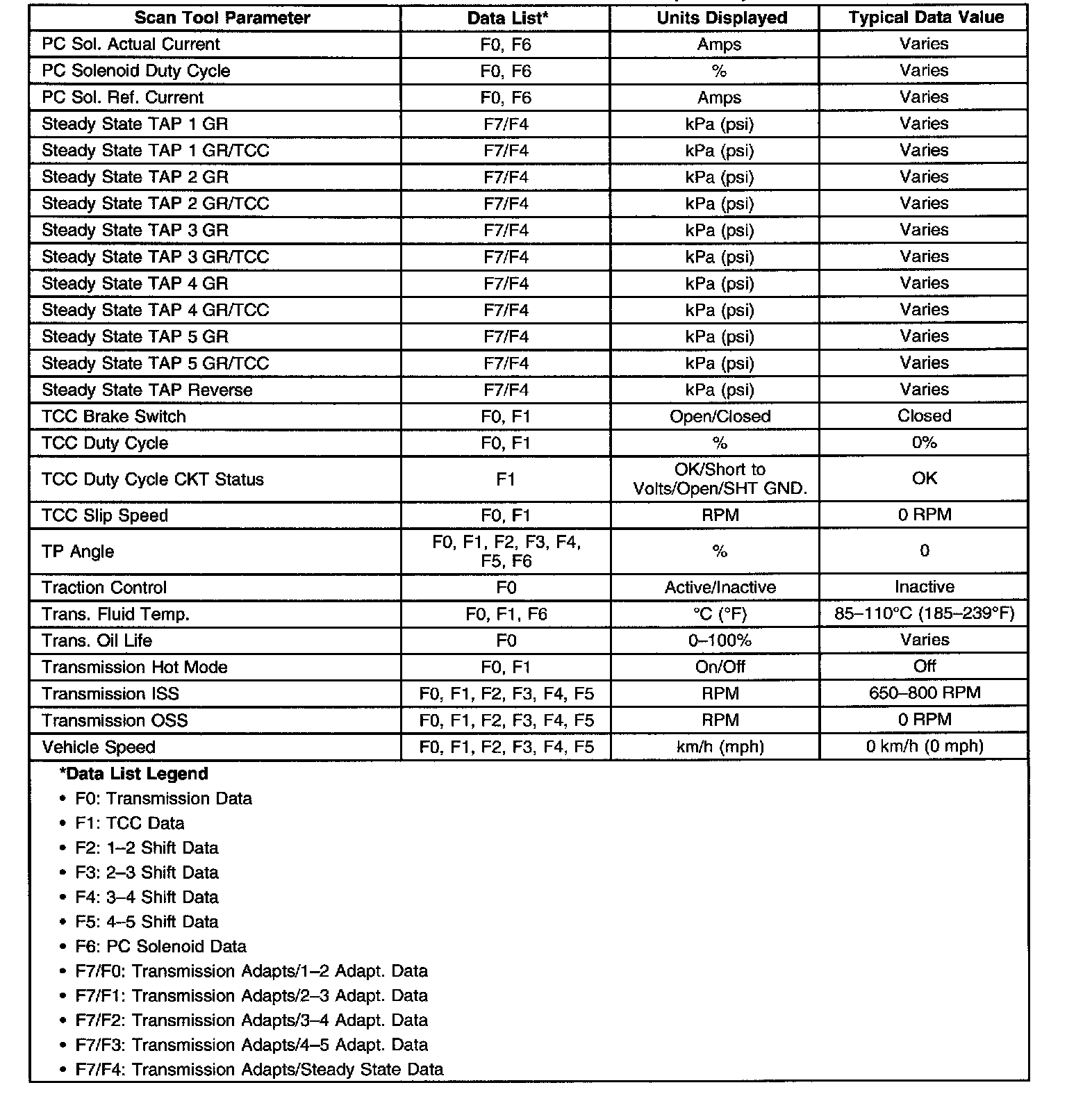 Transmission Scan Tool Data ListUse the Scan Tool Data List under the following conditions: