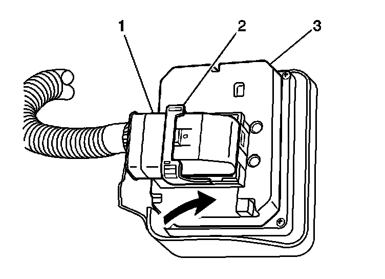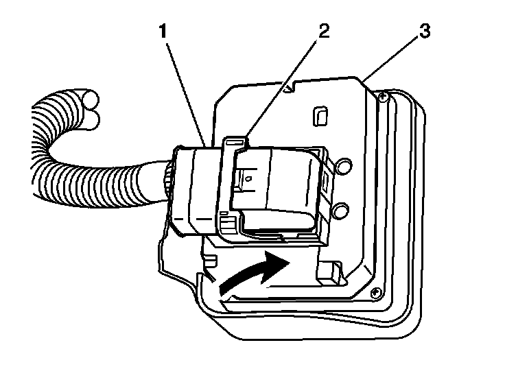 5. Connect the electrical connector to the EBCM (3). Ensure the cam (2) is secured by the lock tab.