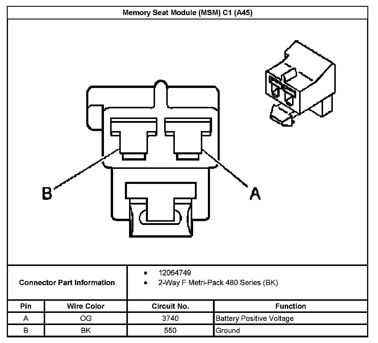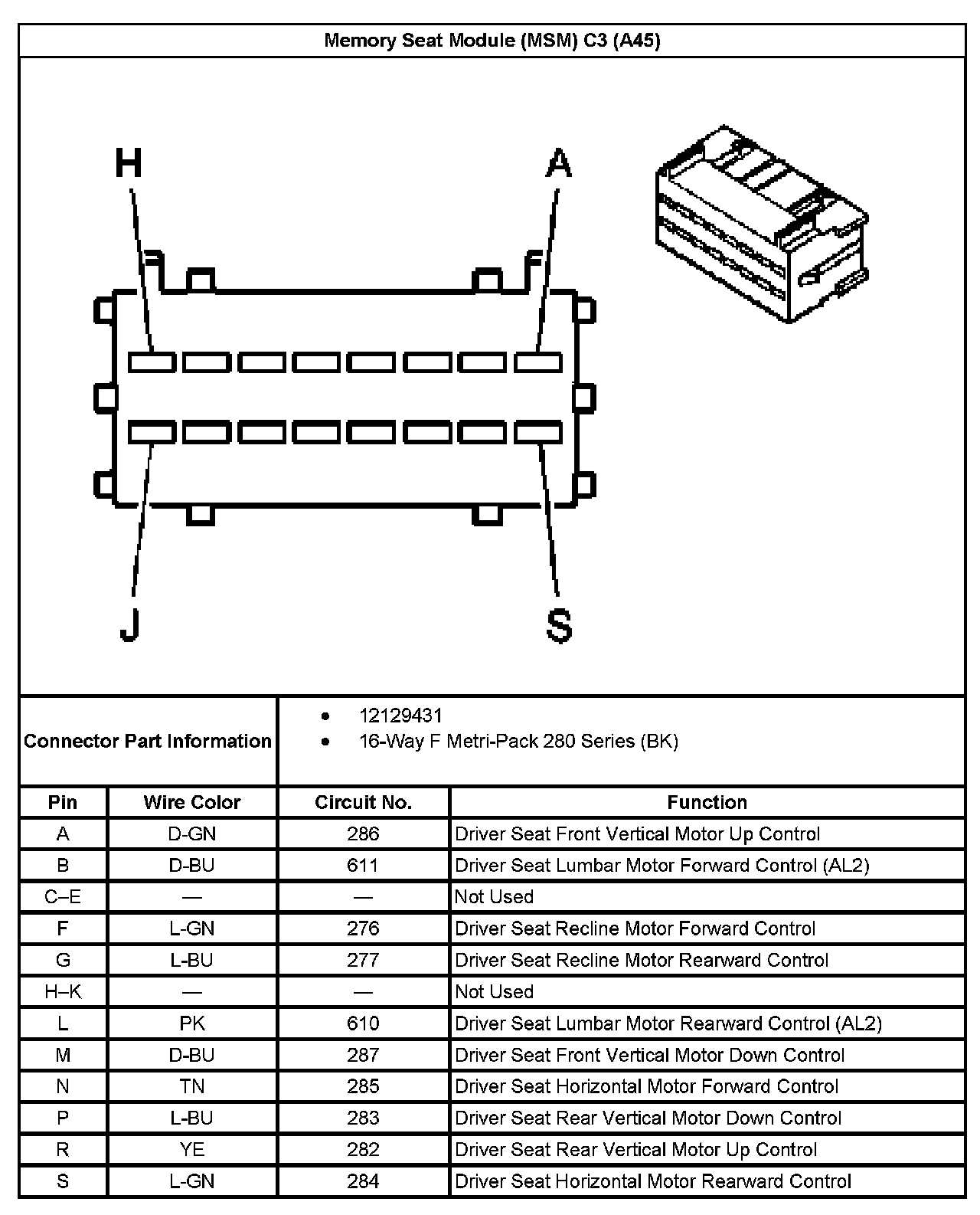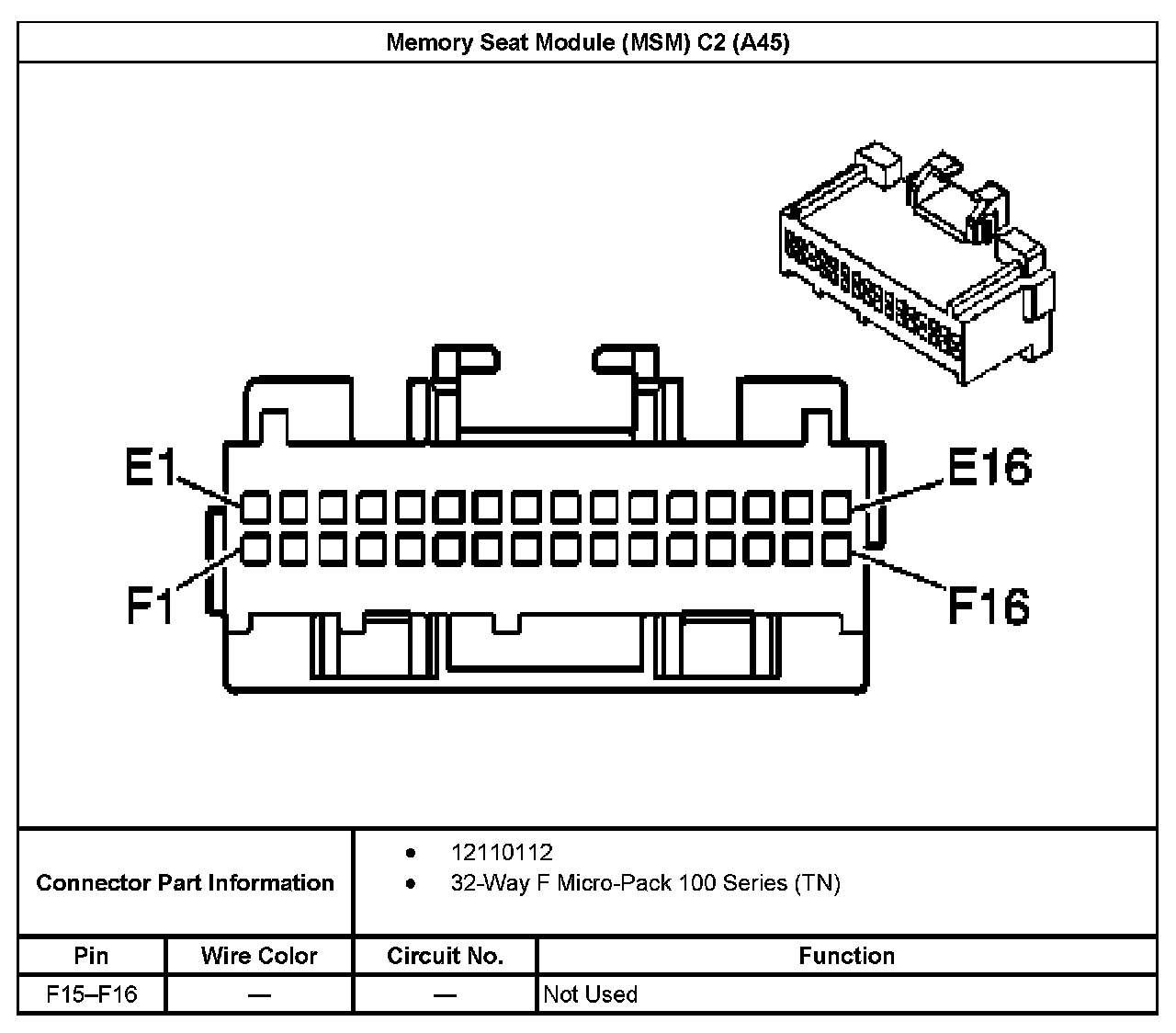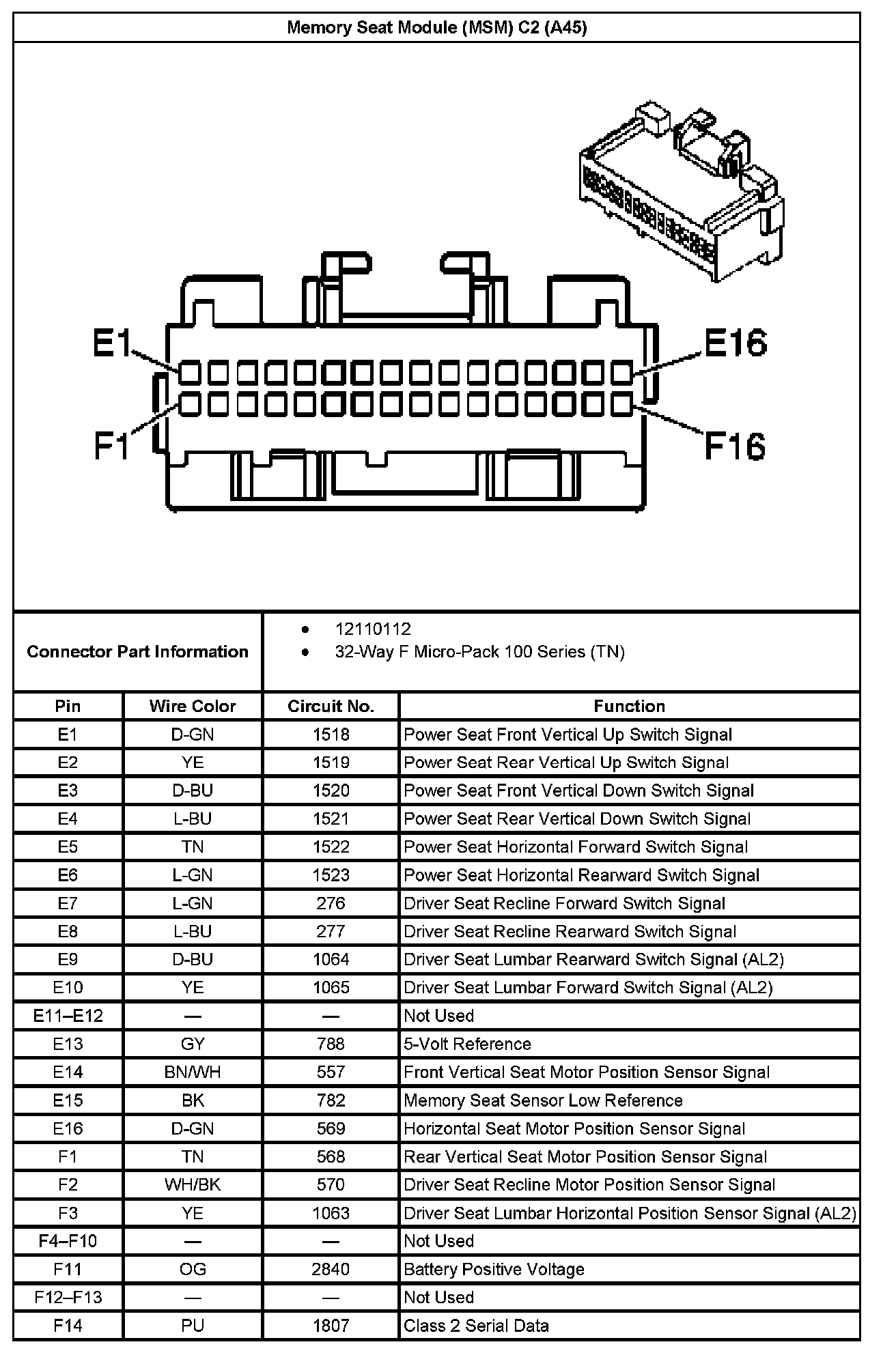 Memory Seat Module (MSM) C2 (With RPO Code A45) Part 1: