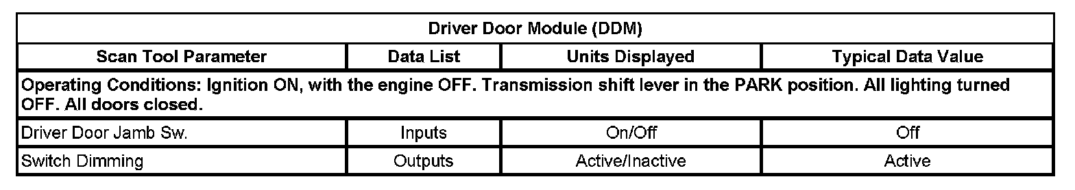 Scan Tool Data List - Drivers Door Module (DDM)