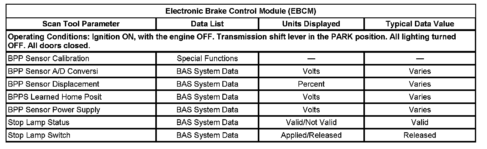 Scan Tool Data List - Electronic Brake Control Module (EBCM)