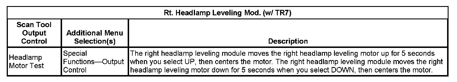 Scan Tool Output Controls - Right Headlamp Leveling Mod. (With RPO Code TR7)