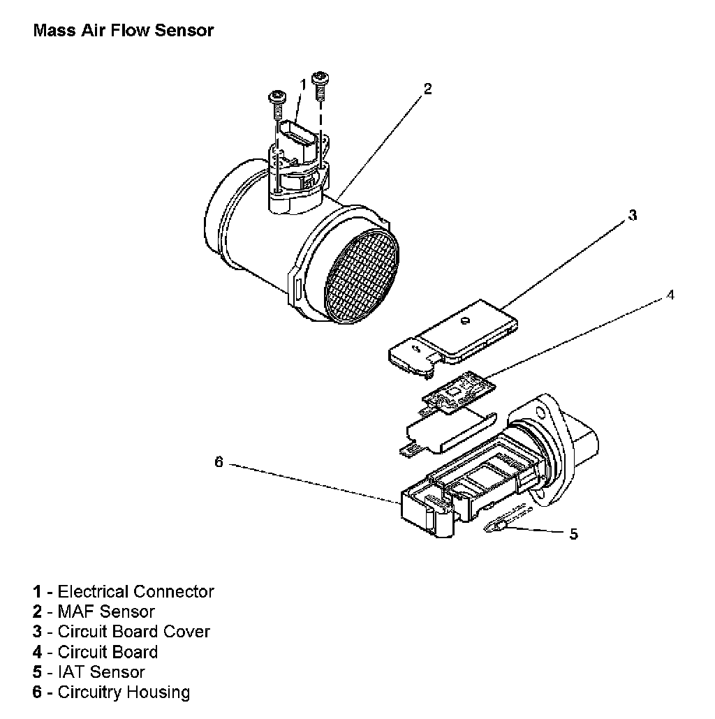 The MAF sensor measures the amount of air coming into the engine. This direct airflow measurement is more accurate than the calculated airflow information obtained from the other sensor inputs. The MAF sensor also houses an integrated intake air temperature (IAT) sensor. The MAF sensor uses the following circuits: