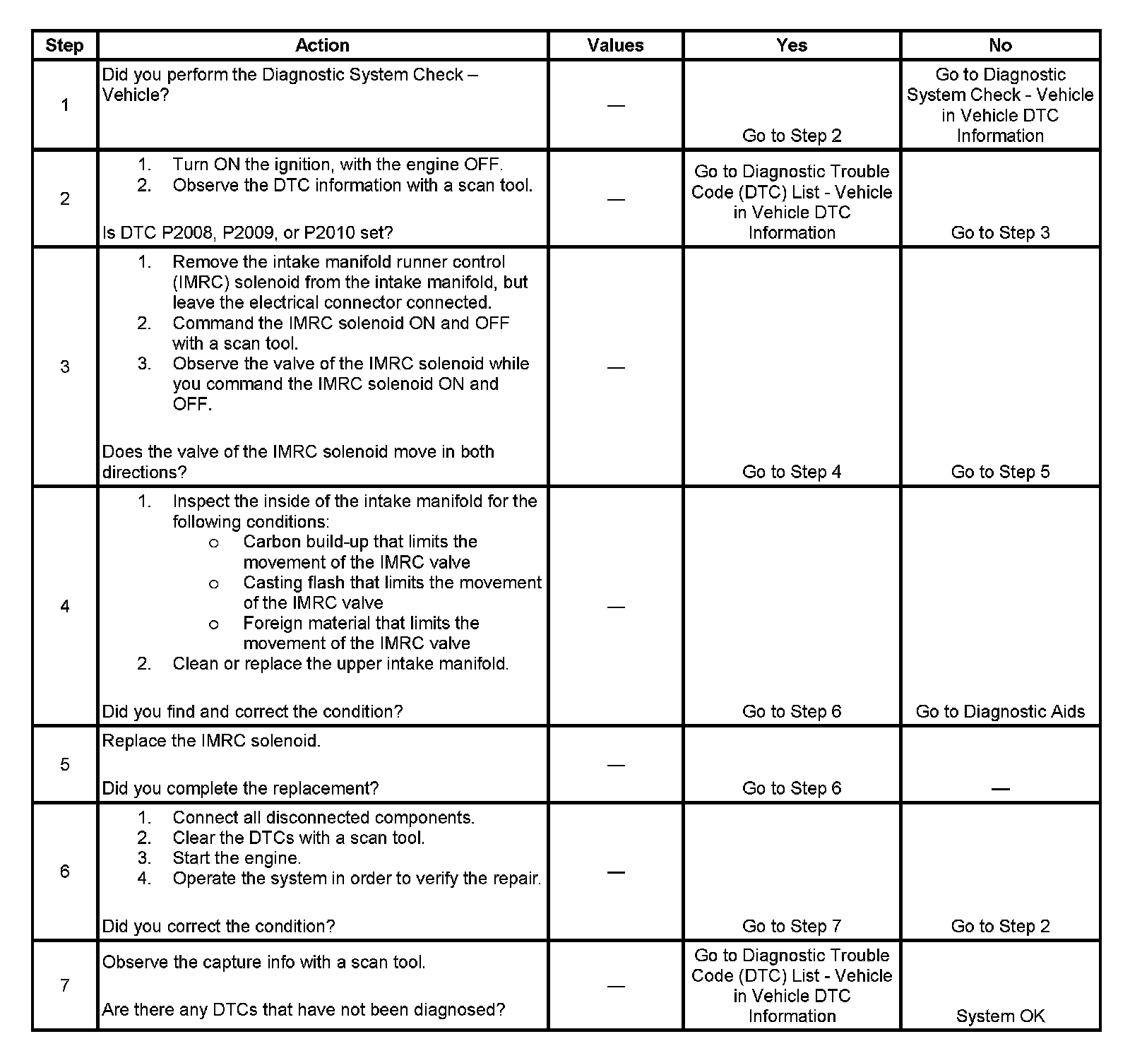 2. This diagnostic table will only diagnose the mechanical portion of the IMRC solenoid. If there is a DTC set for the IMRC solenoid, refer to the appropriate DTC table.