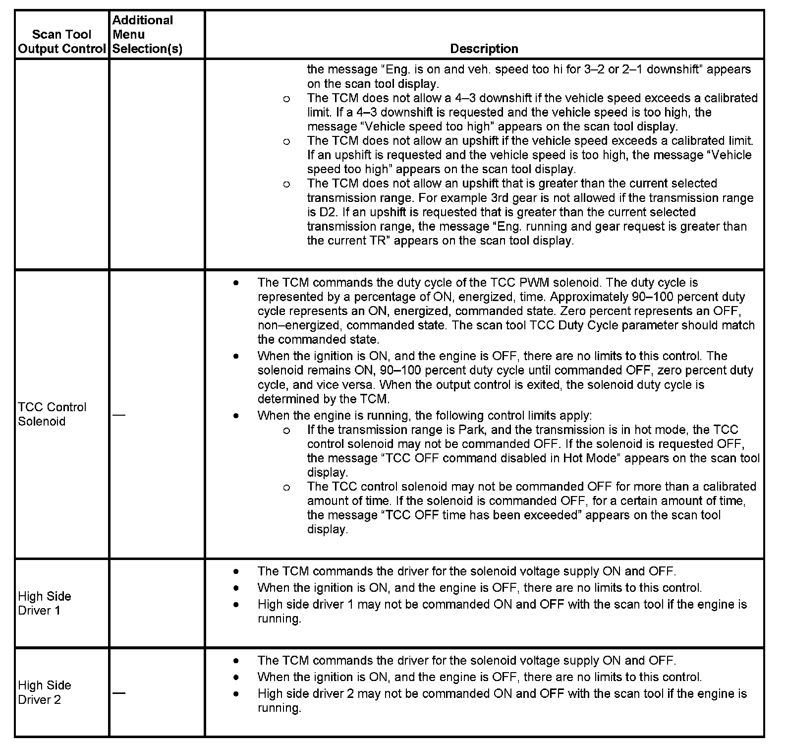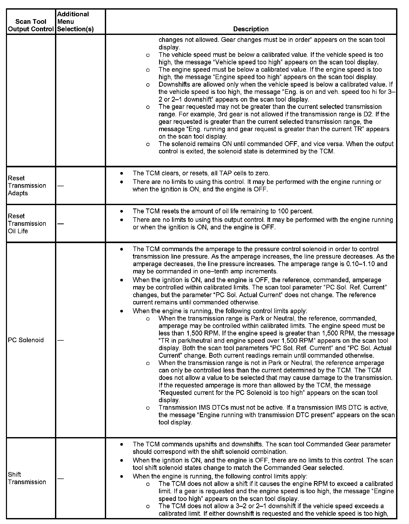 Scan Tool Output Controls