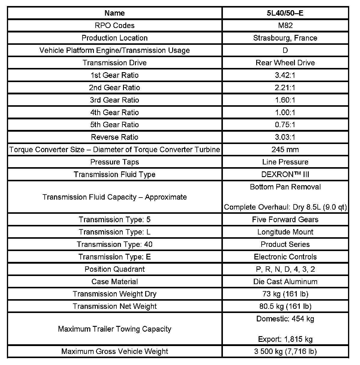 Transmission General Specifications