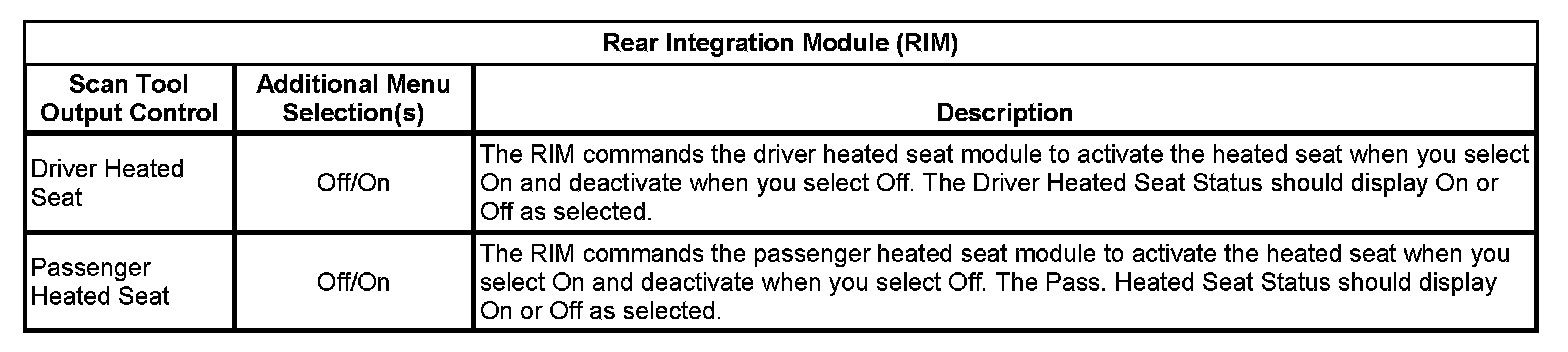 Scan Tool Output Controls - Rear Integration Module (RIM)