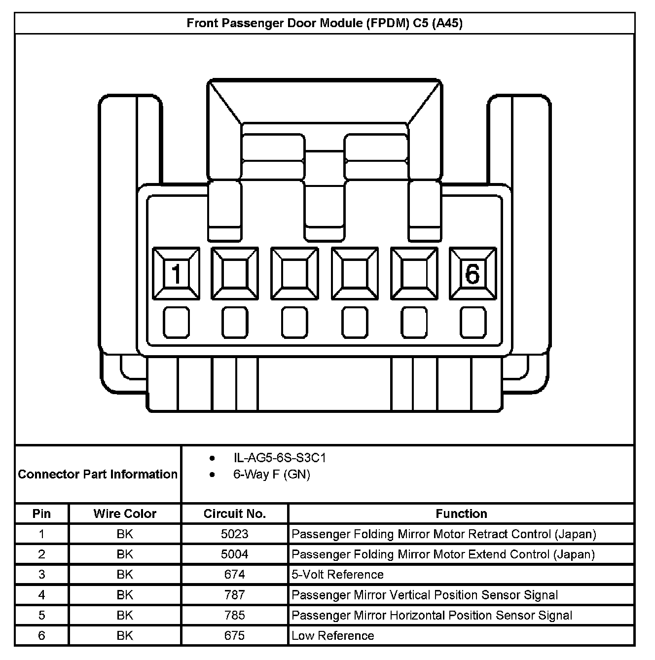 Front Passenger Door Module (FPDM) C5 (With RPO Code A45):