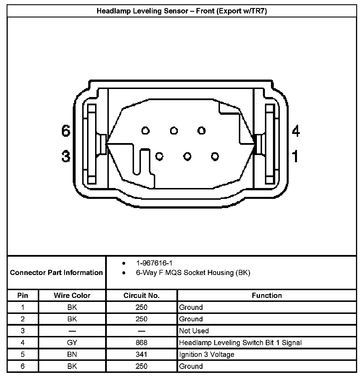 Headlamp Leveling Sensor - Front (Export with RPO Code TR7):