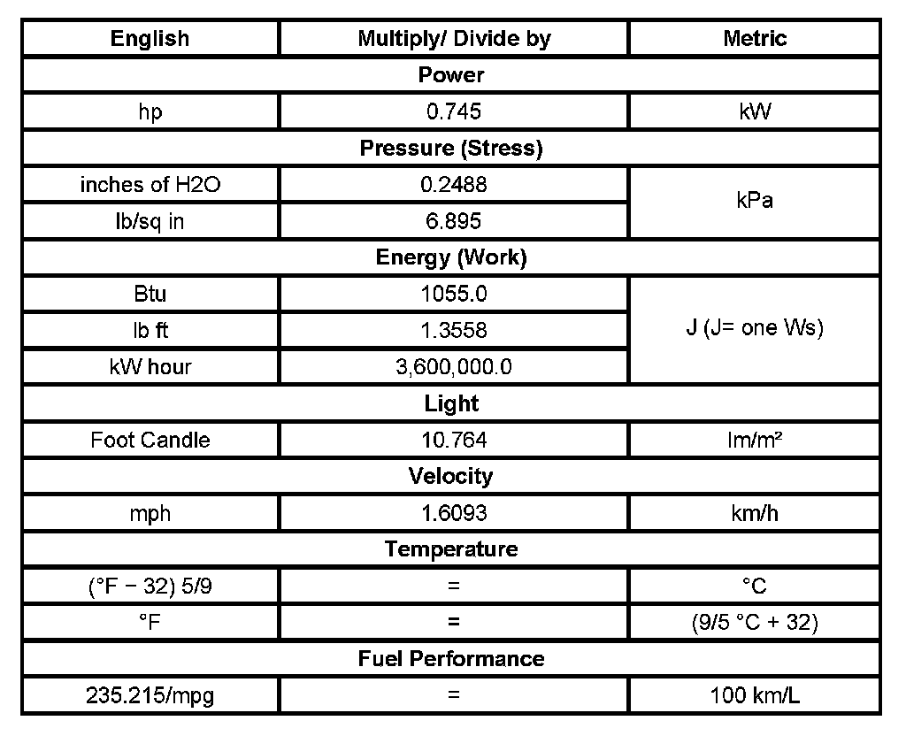 Conversion - English/Metric