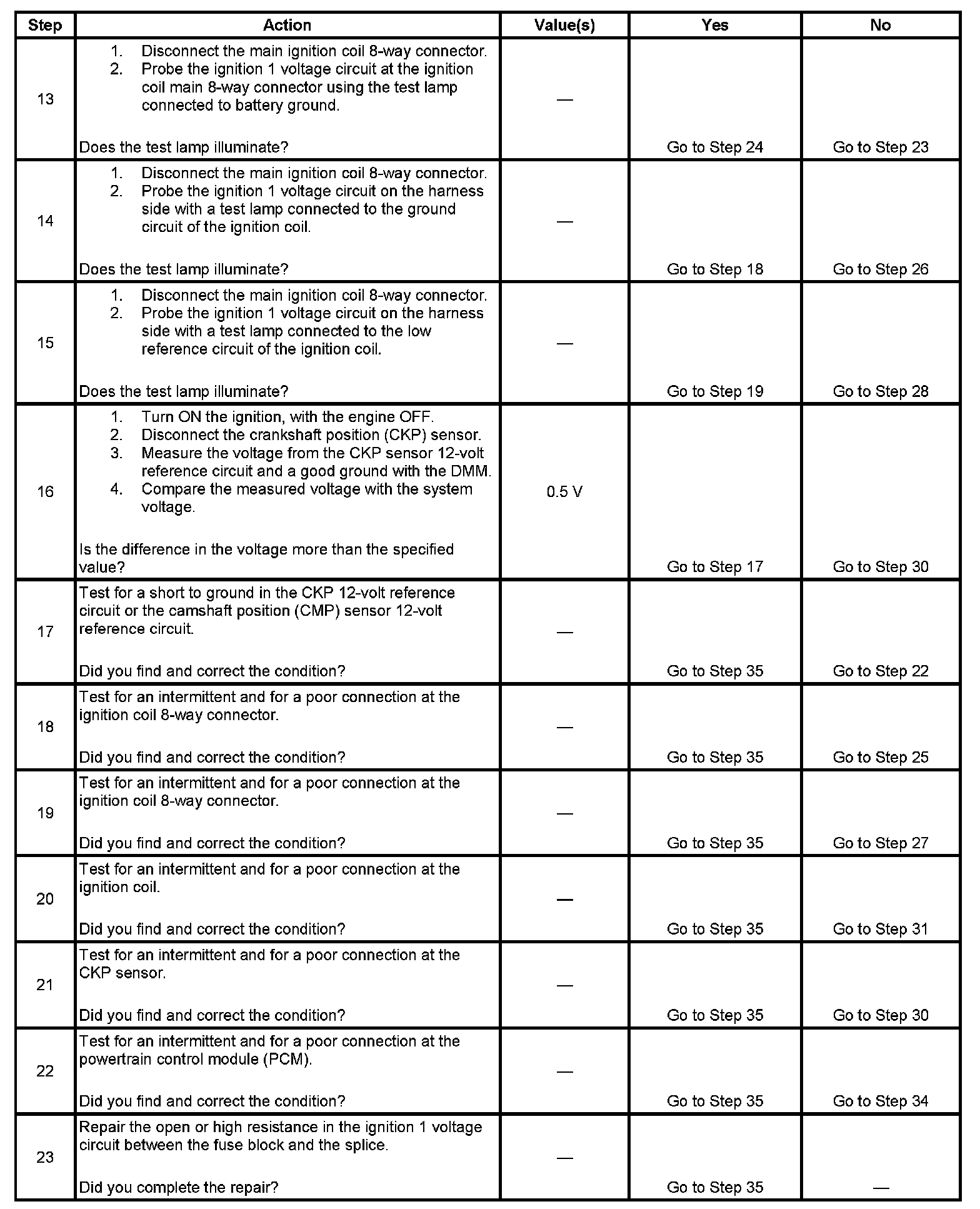 12. A good indication that the fuse is open is all of the misfire current counters are incrementing on one side of the engine. Inspect the ignition positive voltage circuit for a grounded circuit. If the fuse is open and the ignition coil circuits are OK, inspect the injector circuits for being grounded.