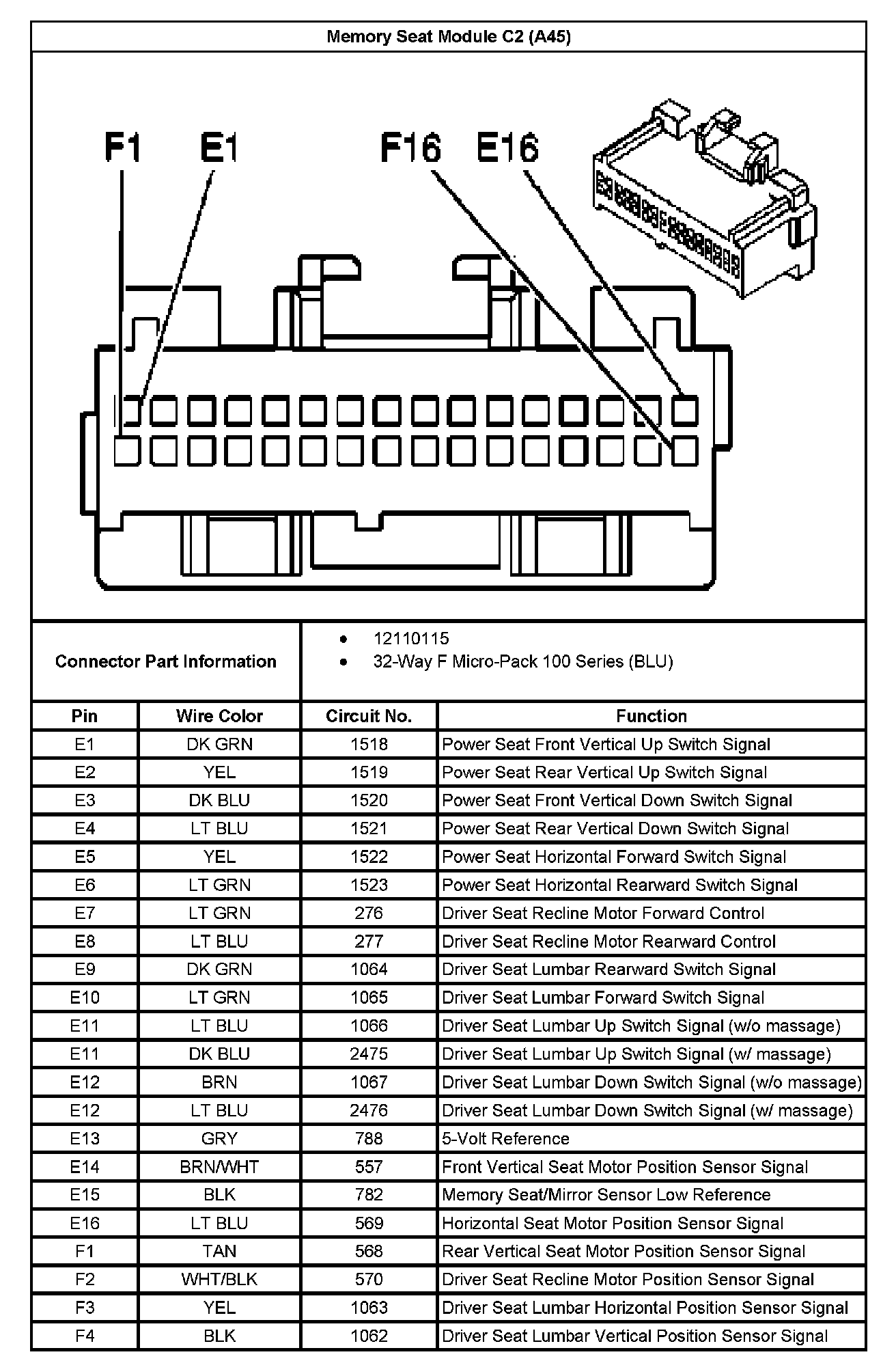 Memory Seat Module C2 (With RPO Code A45) Part 1: