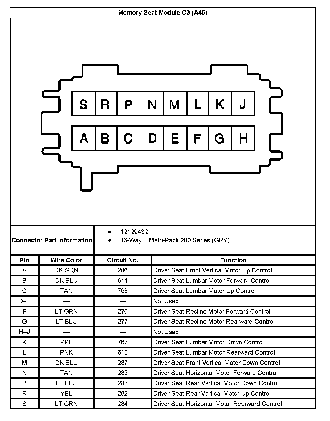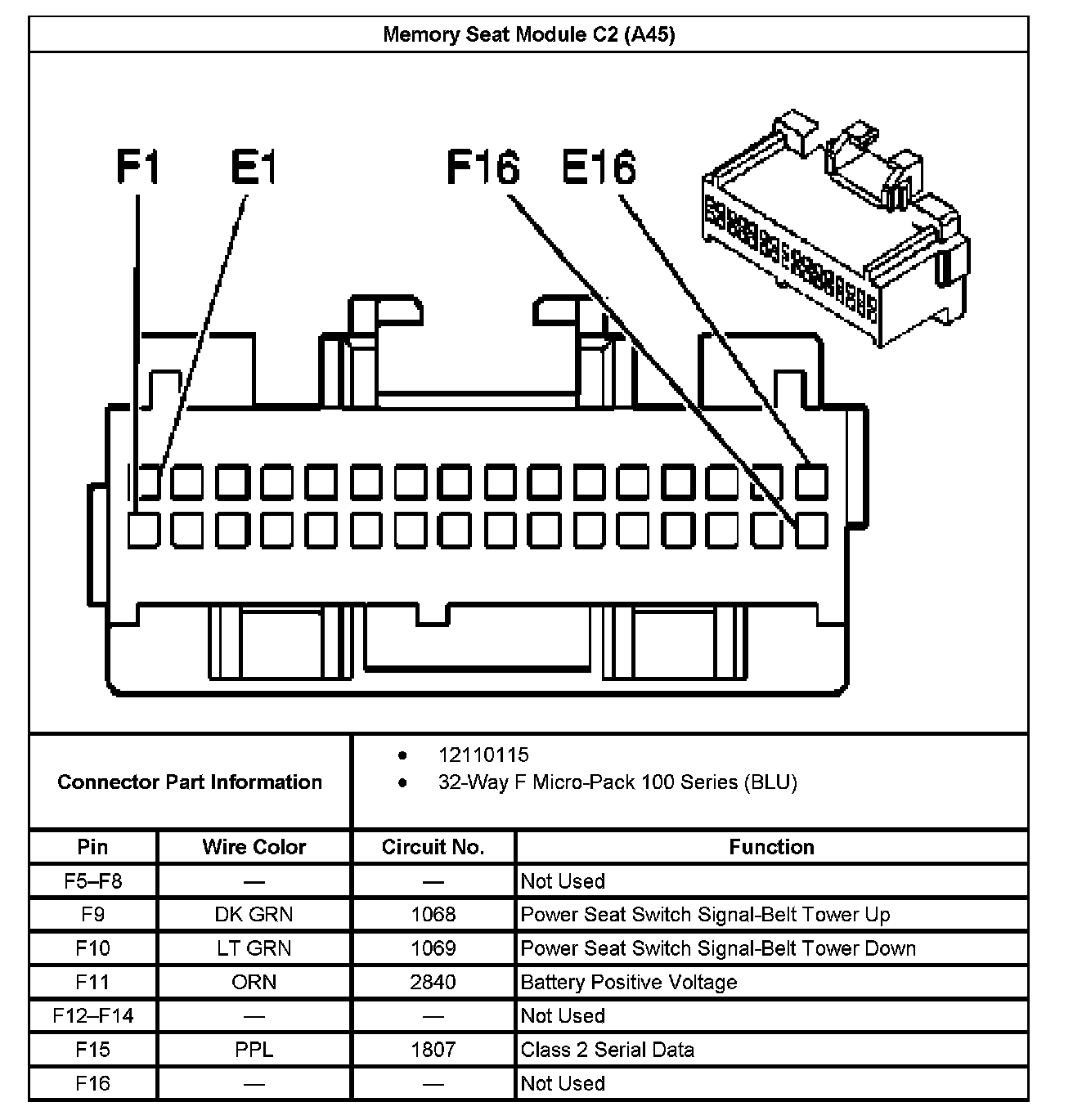 Memory Seat Module C2 (With RPO Code A45) Part 2: