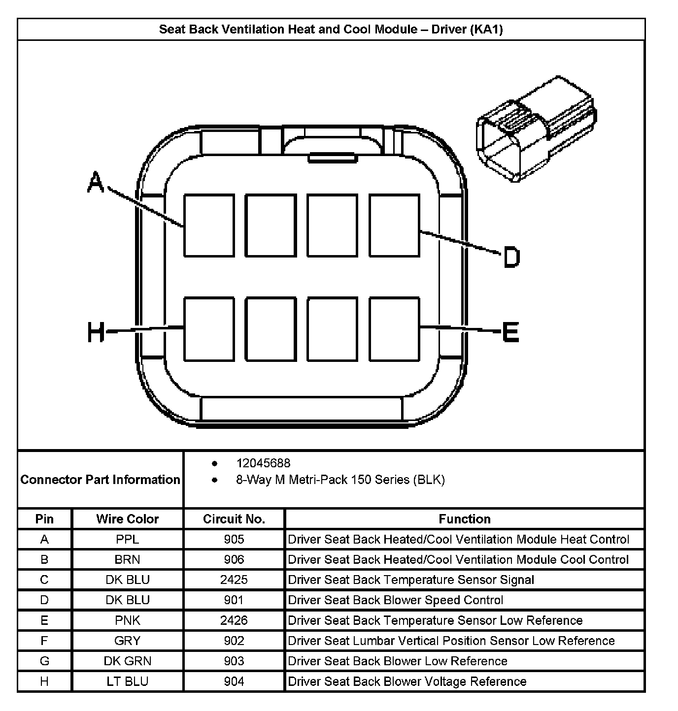 Seat Back Ventilation Heat And Cool Module - Driver (With RPO Code KA1):