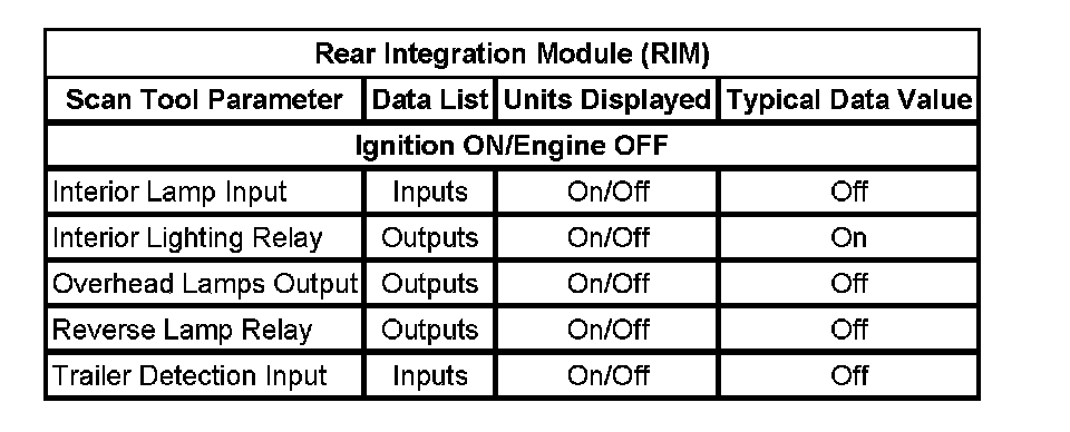 Scan Tool Data List - Rear Integration Module (RIM)