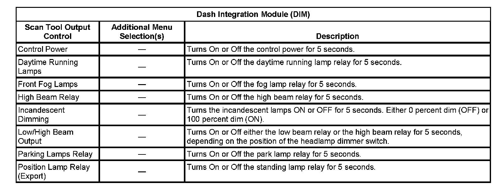 Scan Tool Output Controls - Dash Integration Module (DIM)
