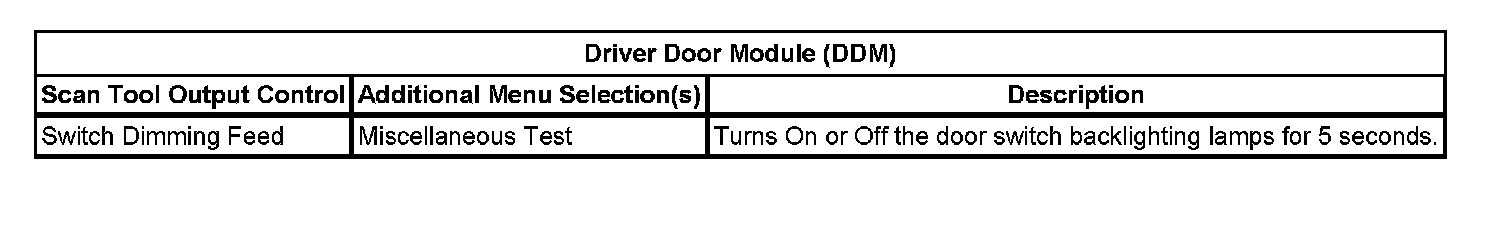 Scan Tool Output Controls - Driver Door Module (DDM)