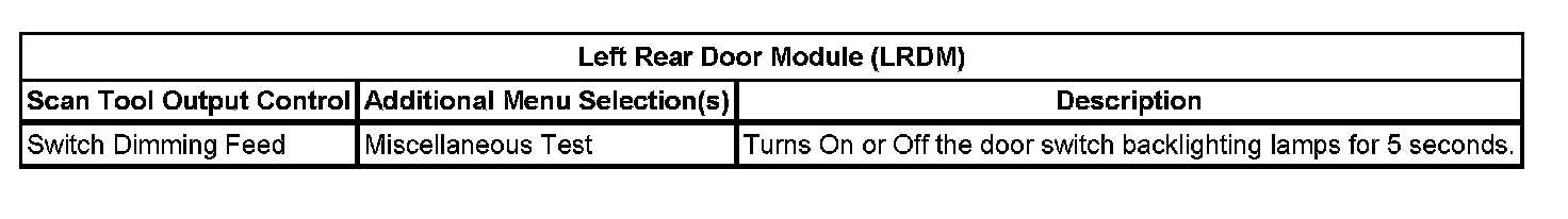 Scan Tool Output Controls - Left Rear Door Module (LRDM)