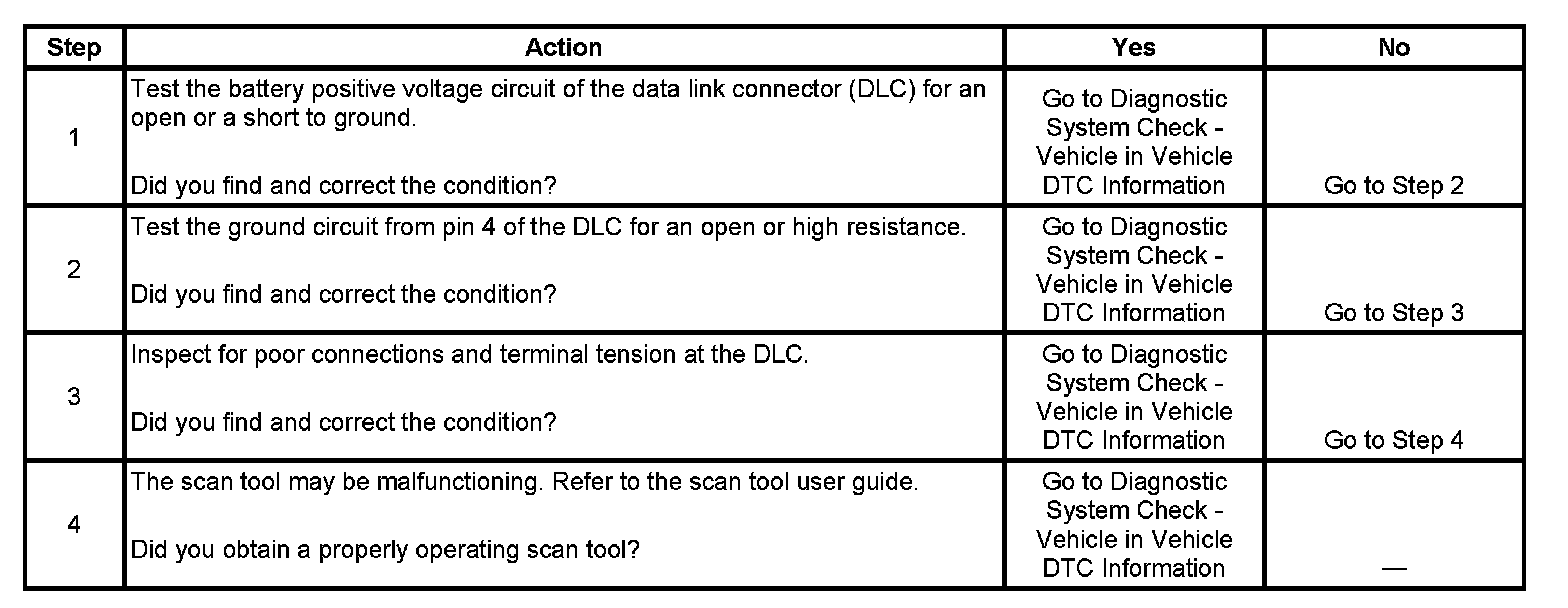 4. If the battery positive voltage and ground circuits of the DLC are functioning properly. The malfunction must be due to the scan tool.