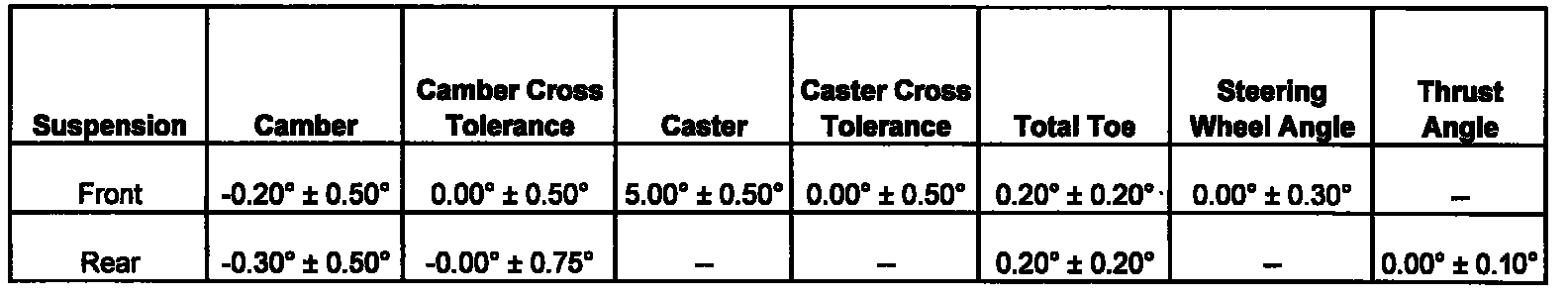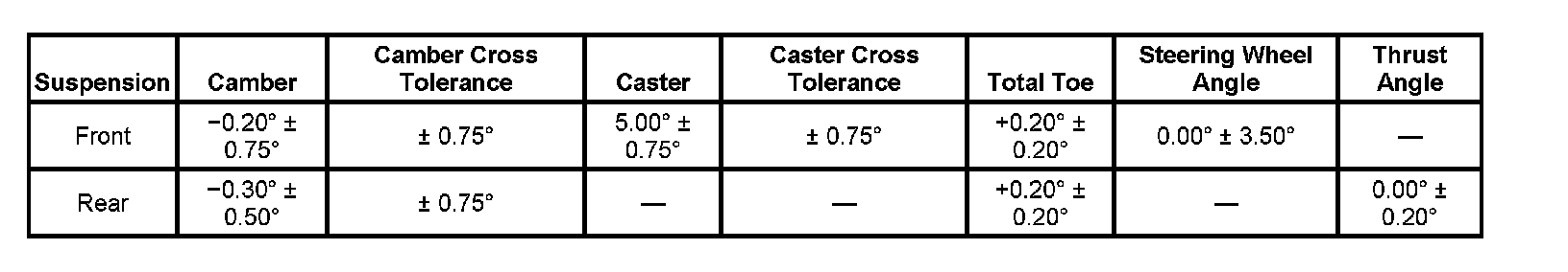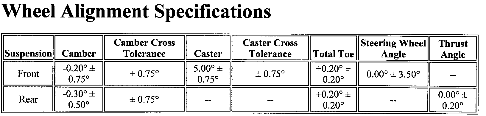 Wheel Alignment Specifications