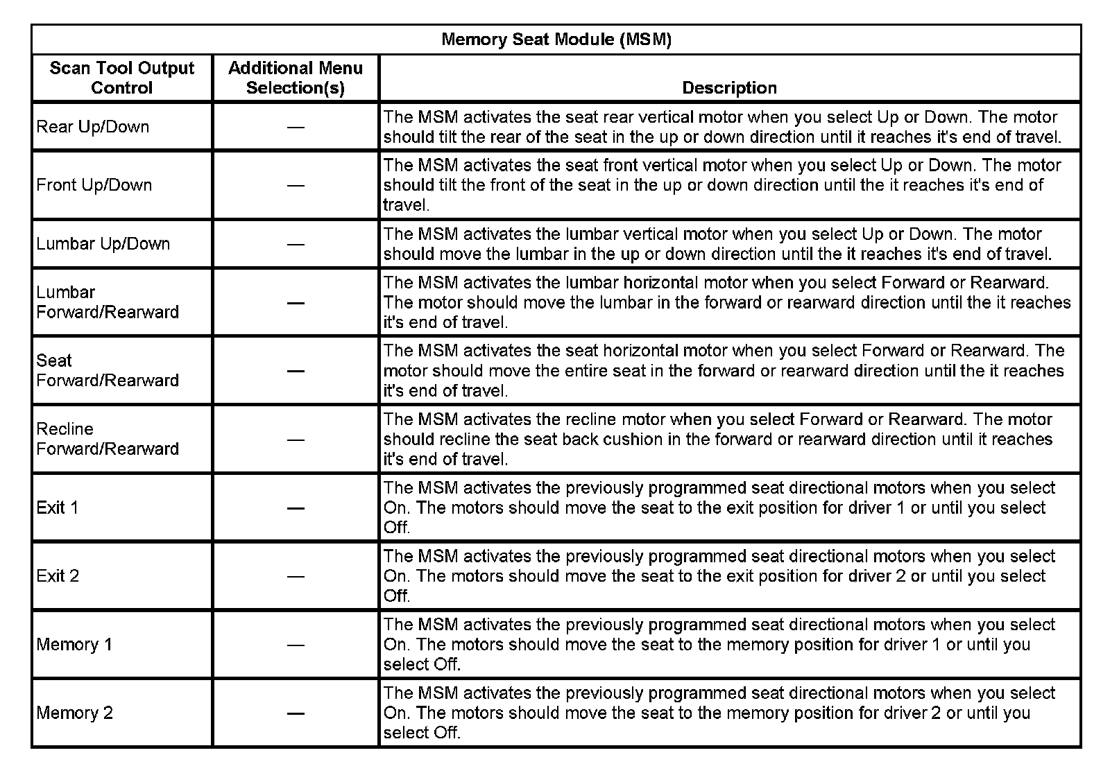 Memory Seat Module (MSM):