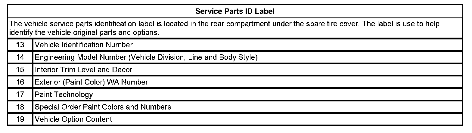 Service Parts ID Label