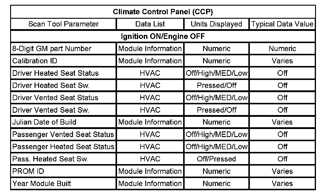Scan Tool Data List