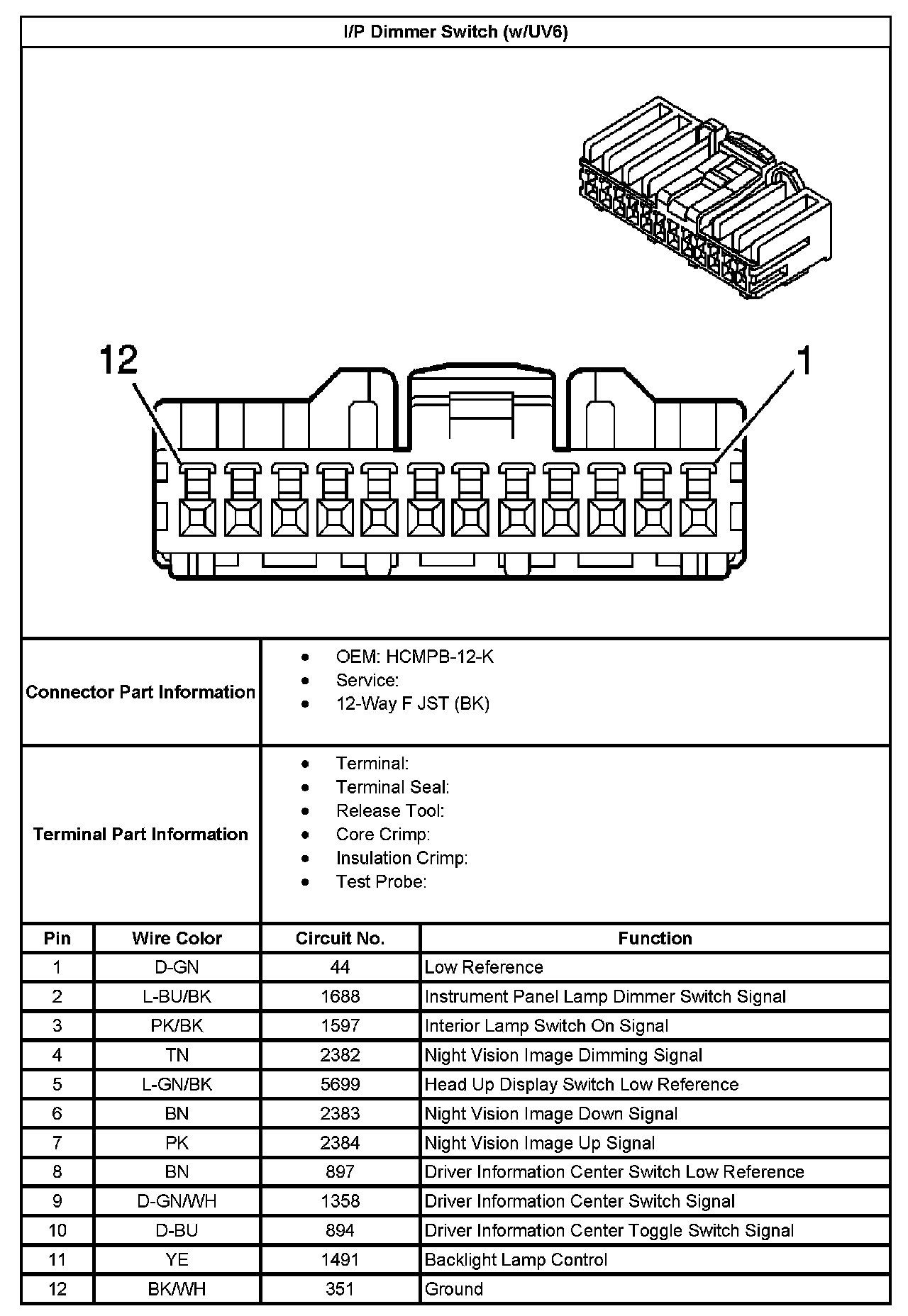 I/P Dimmer Switch (With RPO Code UV6):