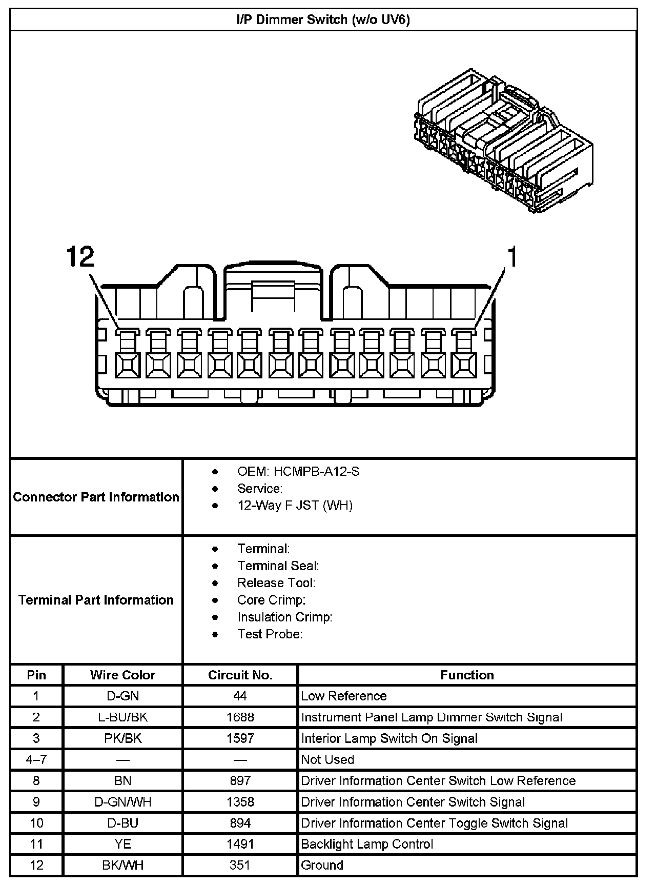 I/P Dimmer Switch (Without RPO Code UV6):