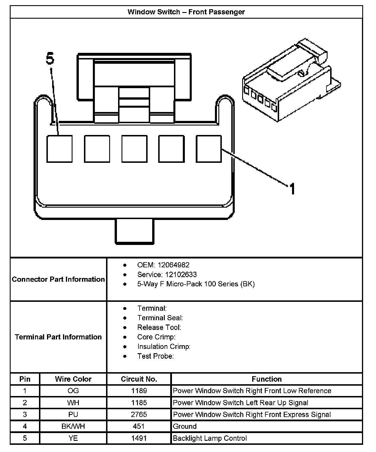 Window Switch - Front Passenger: