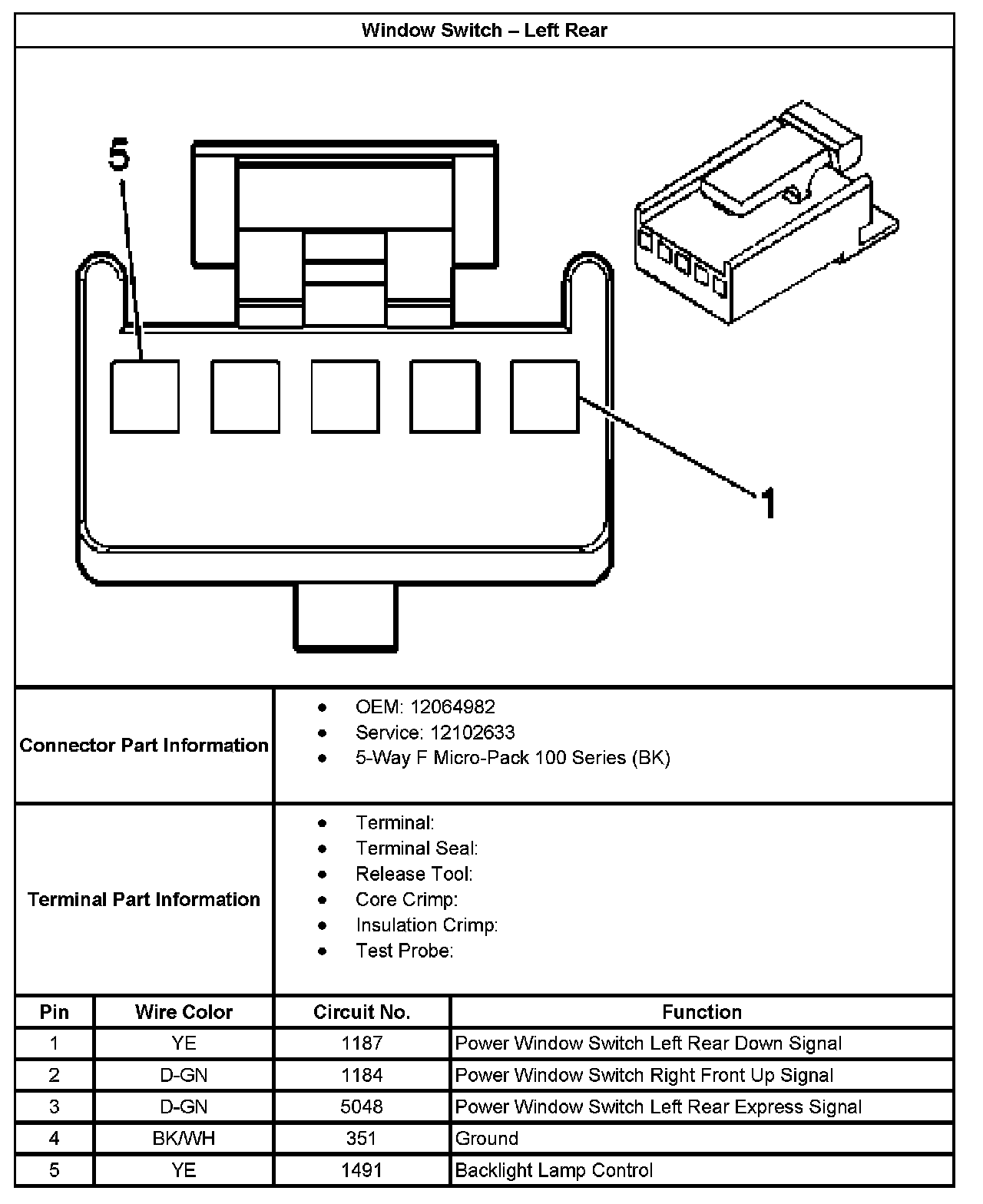 Window Switch - Left Rear: