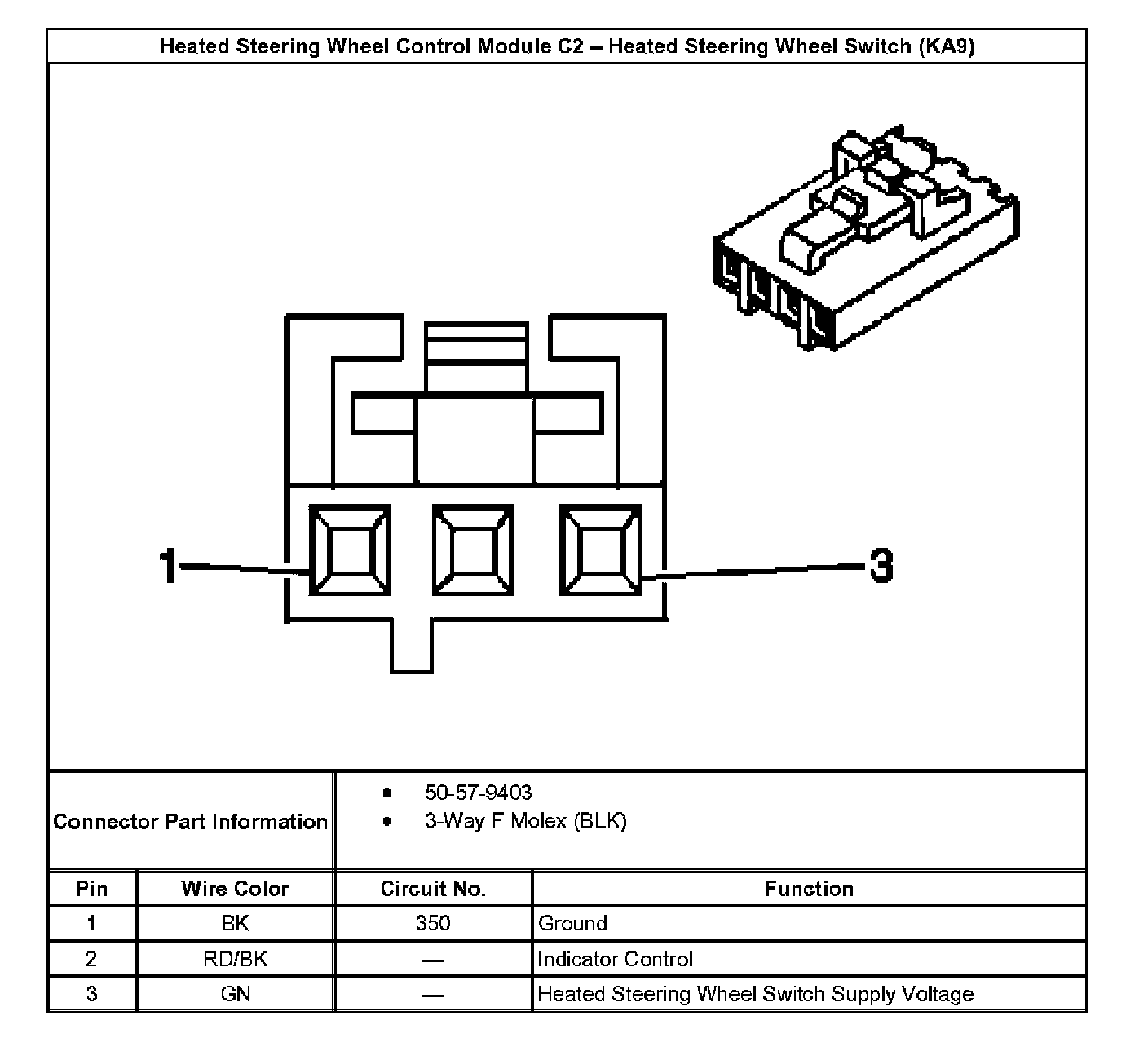 Heated Steering Wheel Control Module C1 - Heated Steering Wheel (KA9):