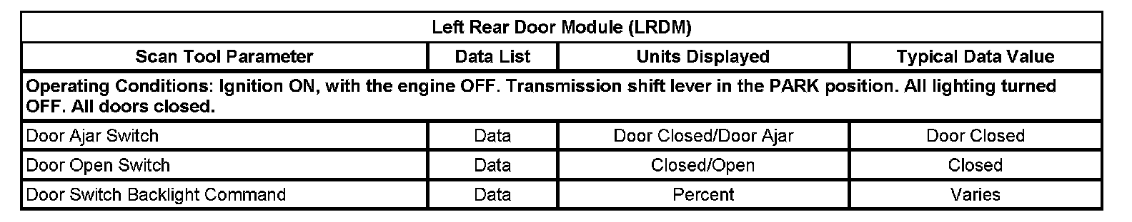 Scan Tool Data List - Left Rear Door Module (LRDM)