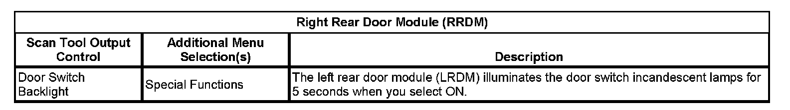Scan Tool Output Controls - Right Rear Door Module (RRDM)