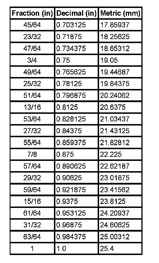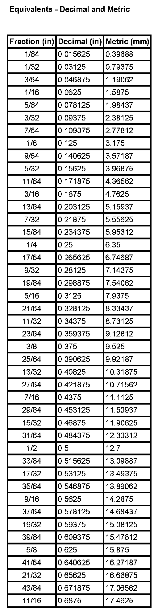 Equivalents - Decimal And Metric