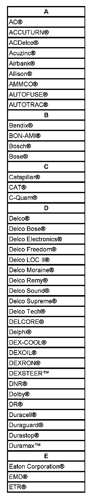 Listed are Registered Trademarks ((R)) or Non-Registered Trademarks ((TM)) which may appear in this service data.
